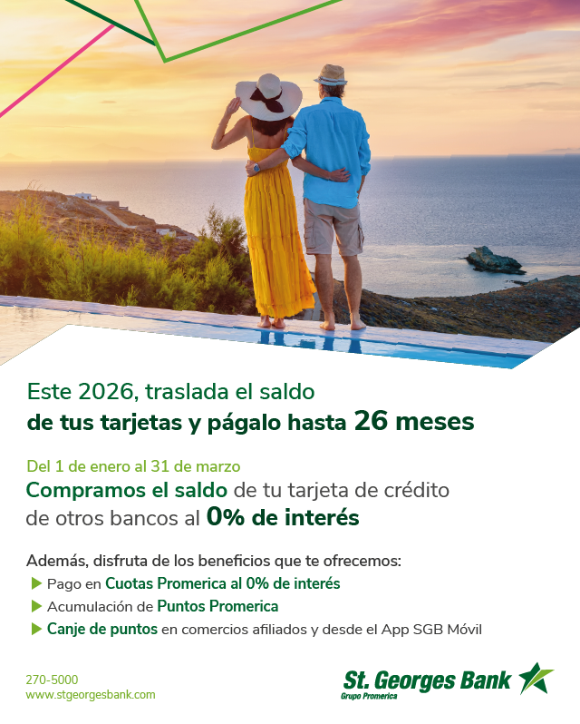 Promoción válida del 1 de enero al 31 de marzo de 2026. Promoción aplica para cuentas nuevas por compra de saldo de tarjetas de crédito de otros bancos a partir de $250.00. Tasas y plazo sujeto a evaluación, verificación y aprobación de crédito. Los plazos de financiamiento 3, 6, 9, 12, 15, 18 y 26 meses con tasa de interés del 0% están condicionadas a una (1) compra al mes, de lo contrario se aplicará la tasa regular de 8.50%. Para tarjetas Business (Corporativas y PYMES) la tasa es de 0% de interés a plazos de 3 meses por un monto mínimo $500.00. La compra de saldo no debe exceder el 70% del límite de crédito aprobado. Aplica cargo por servicio de compra de saldo de $35.00 y seguro de saldo de deuda más ITBMS. La Compra de Saldo no aplica para acumulación de Puntos Promerica, ni cashback, tarjetas de crédito acogidas a ley de moratoria, bloqueadas, con pago atrasado o sobregiro en otros bancos. De presentar mora de 30 días en adelante, el saldo de la línea regular pasará a tasa moratoria y a tasa regular del producto una vez se realice el pago correspondiente, de la misma manera se aplicará un cargo administrativo por pago atrasado. El Banco se reserva el derecho de realizar cambios o modificaciones en las características, beneficios y promociones ofertadas en este arte.